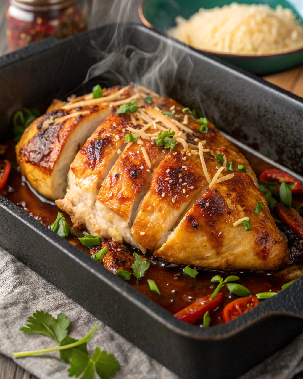 Once out of the oven, let the chicken rest for 5 minutes so the juices redistribute (and the sauce settles into that perfect glossy layer). Sprinkle with some chopped green onions or sesame seeds for a little extra flair — optional but highly recommended. Serve it up with steamed rice or crunchy veggies and get ready for compliments.