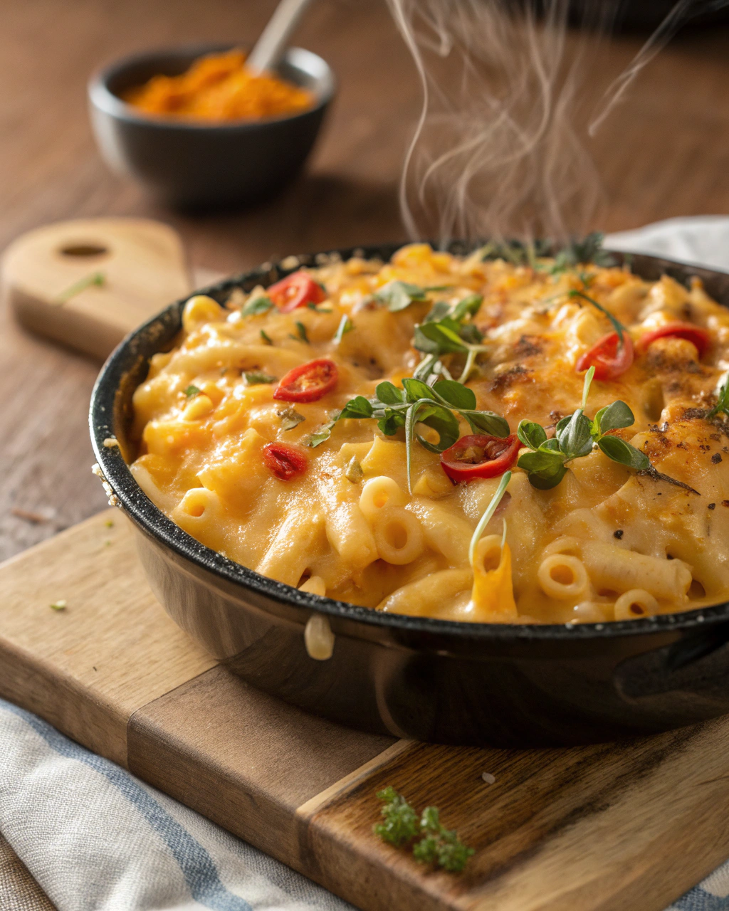 Let’s talk topping: mix the panko breadcrumbs with melted butter and Parmesan cheese in a small bowl. Sprinkle this glorious, golden crumb layer evenly over the mac and cheese. Pop it in a preheated oven at 350°F and bake for 20–25 minutes, until the top is deeply golden and crunchy, and you see bubbles of cheese peeking through. That crunch is everything.