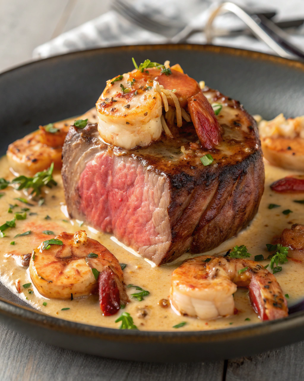Filet Mignon with Shrimp and Lobster Cream Sauce