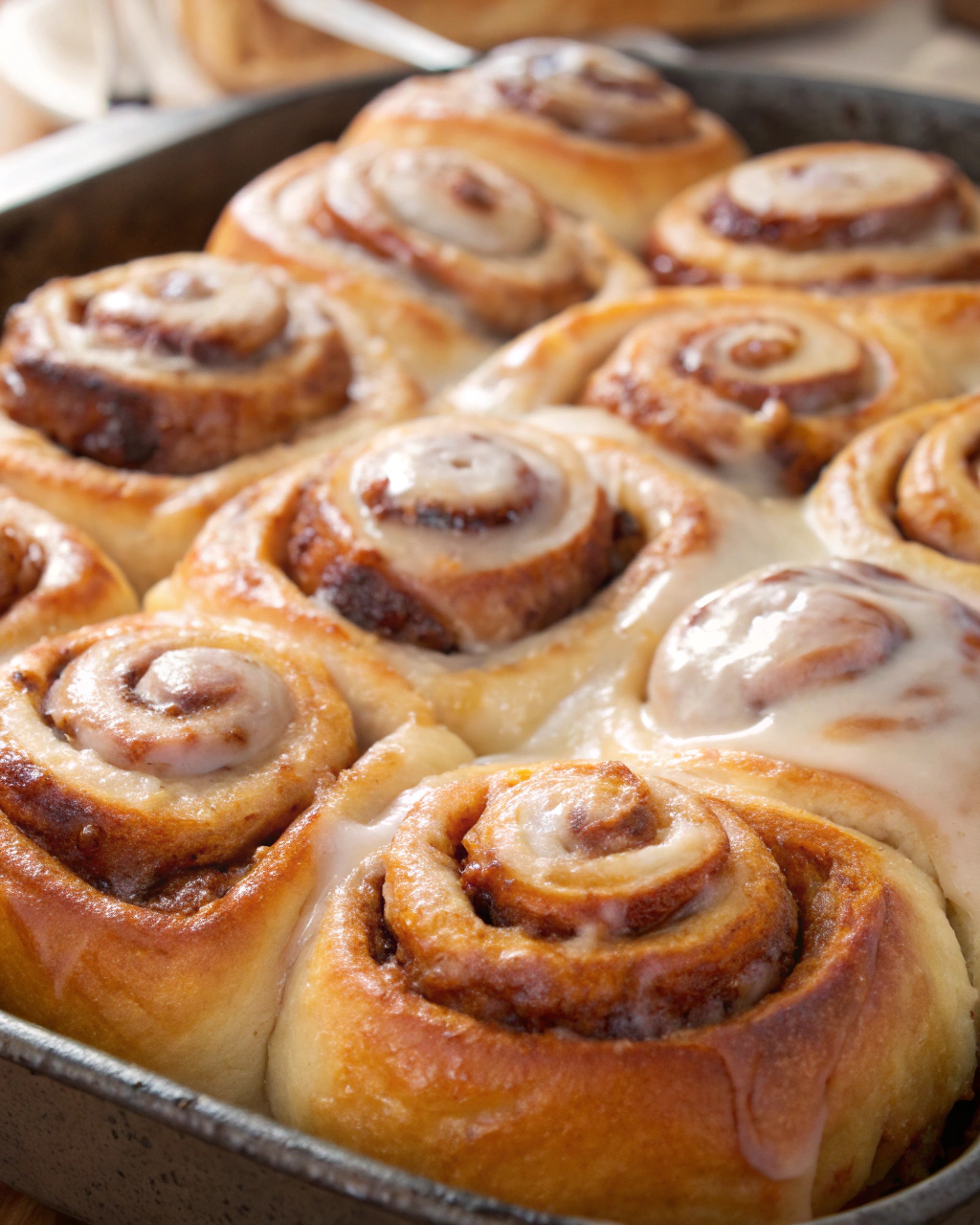 While the rolls are still warm, whip up the glaze by mixing the powdered sugar, cream cheese, melted butter, milk, and vanilla until smooth and creamy. Drizzle it over the hot rolls so it melts into every crevice, making them irresistibly gooey and shiny. Serve warm — trust me, they taste best straight from the oven!