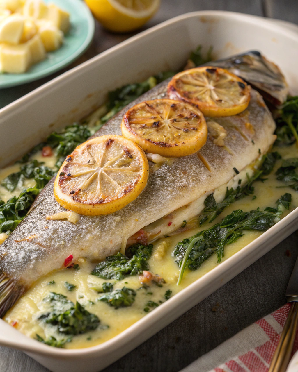 Luscious Lemon-Garlic Seabass with Creamed Spinach