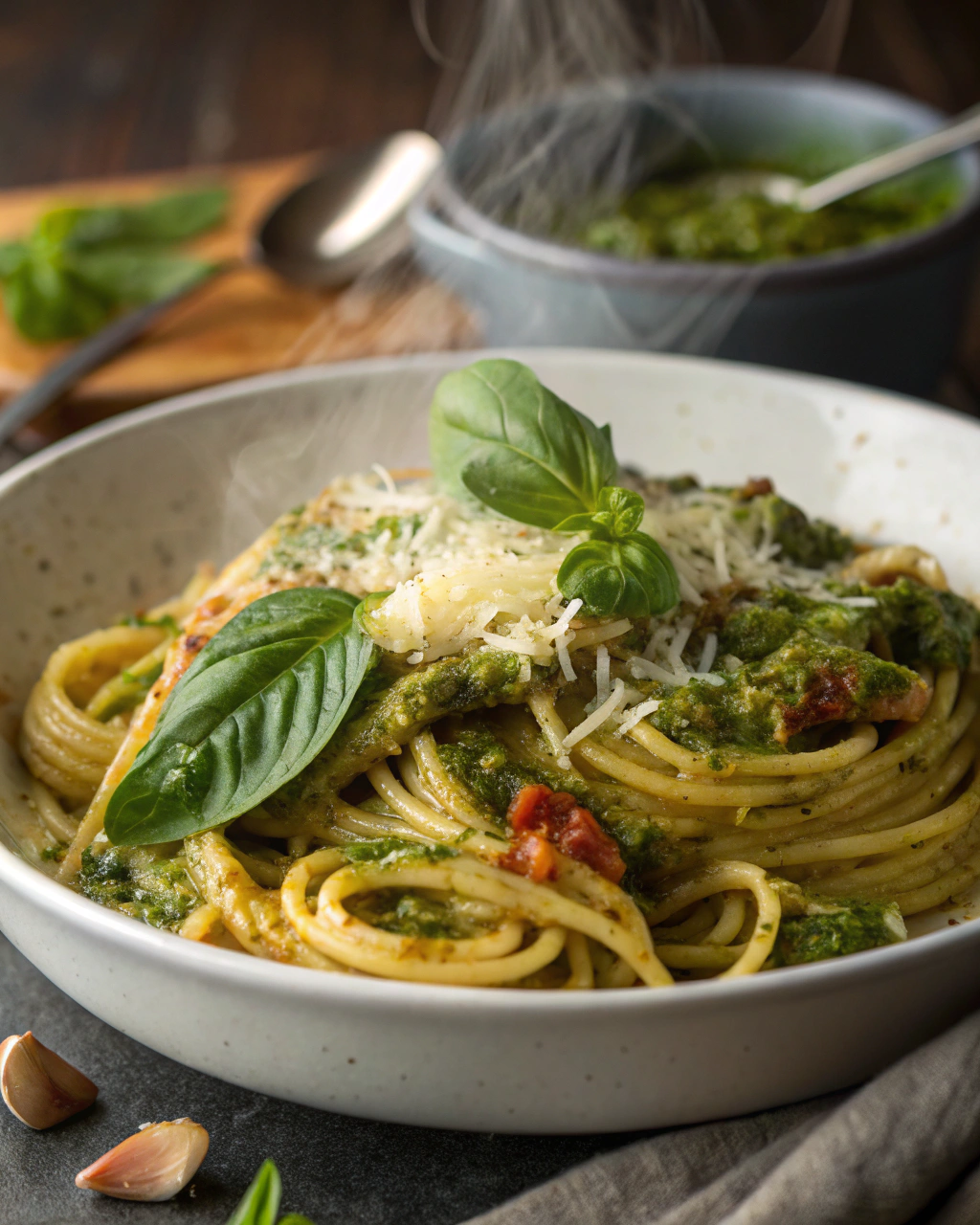 - If your pesto feels too thick, add olive oil or pasta water bit by bit — it should be loose enough to coat but not soupy.
